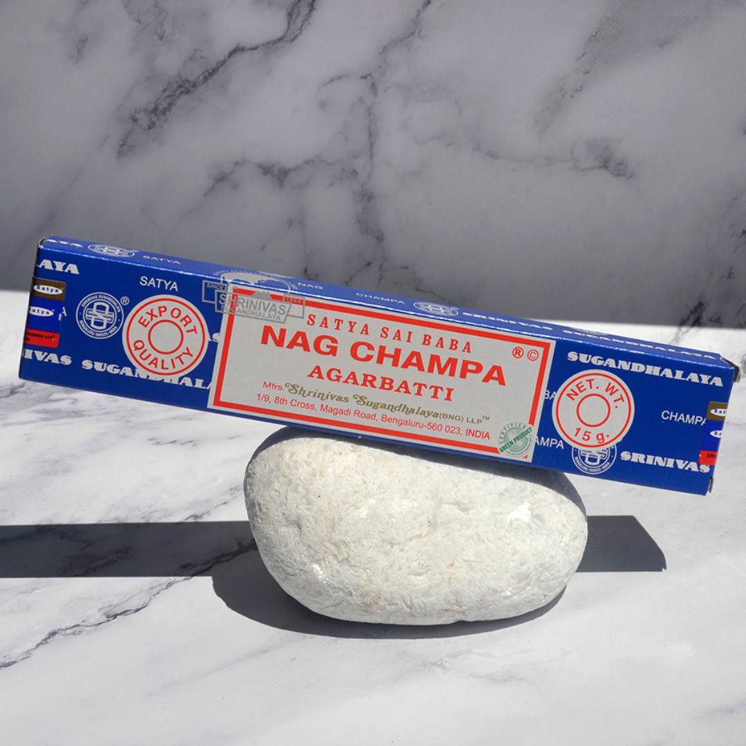 El incienso Nag Champa es ideal para la meditación y relajación, promoviendo la paz, mejorando el estado de ánimo y la energía ambiental.