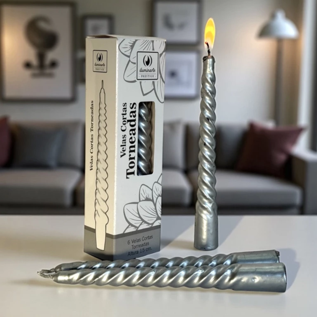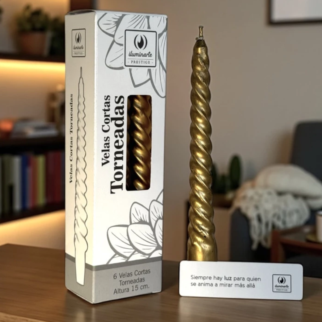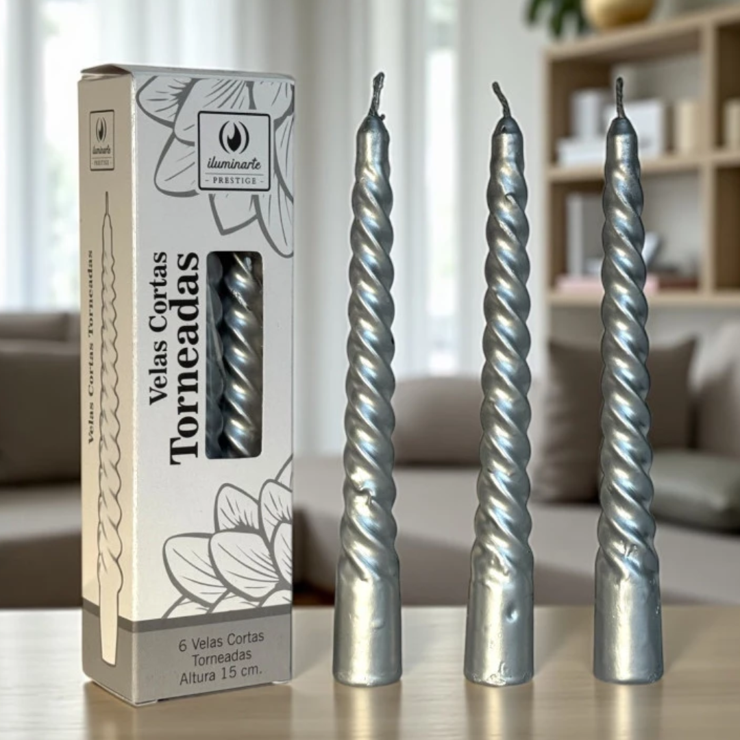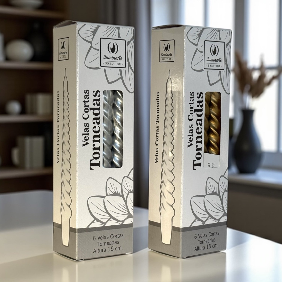 Velas navideñas torneadas de 15cm. de altura. Cada caja contiene 6 velas.