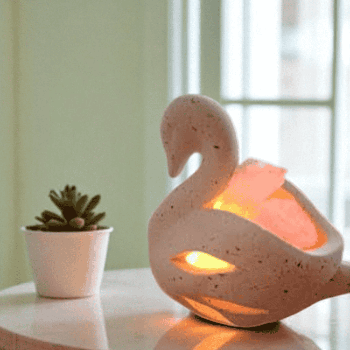 La lámpara de sal Himalaya modelo Cisne es un hermoso accesorio que combina estética y funcionalidad. Con dimensiones de 16 cm de altura y 14 cm de diámetro, su diseño elegante e innovador se asemeja a un cisne, aportando un toque de distinción a cualquier espacio.