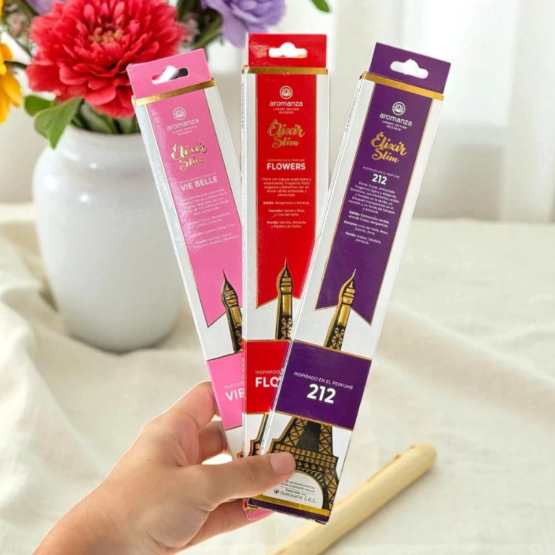 Sahumerios fabricados con los aromas de perfumeria fina, exquisitas fragancias. Calidad premium. La caja contiene 10 varillas simples, 10 motivos disponibles.
