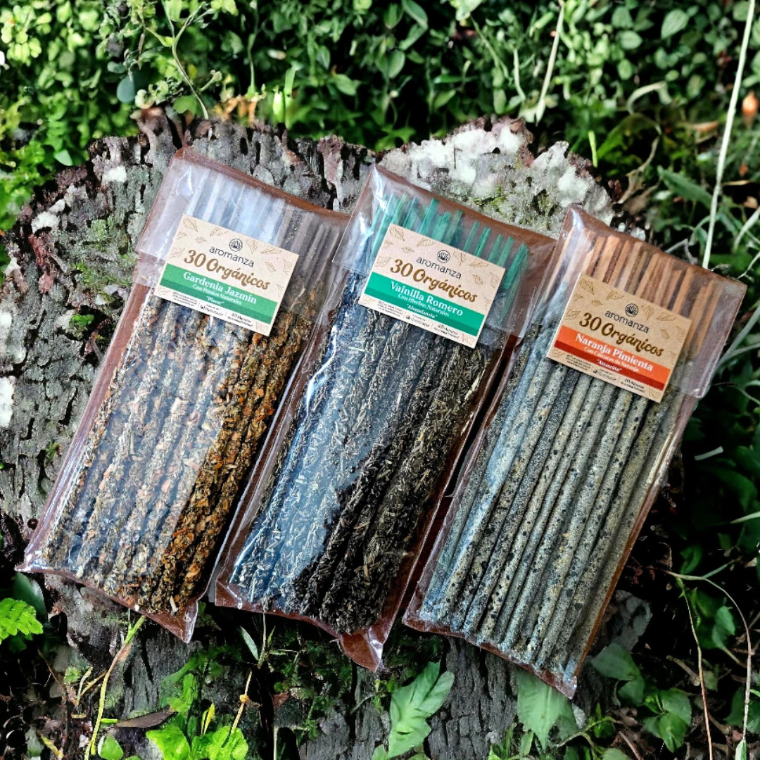 Sahumerio ecológicos con resinas naturales y exquisitas fragancias. Contiene 30 varillas, surtimos paquetes.