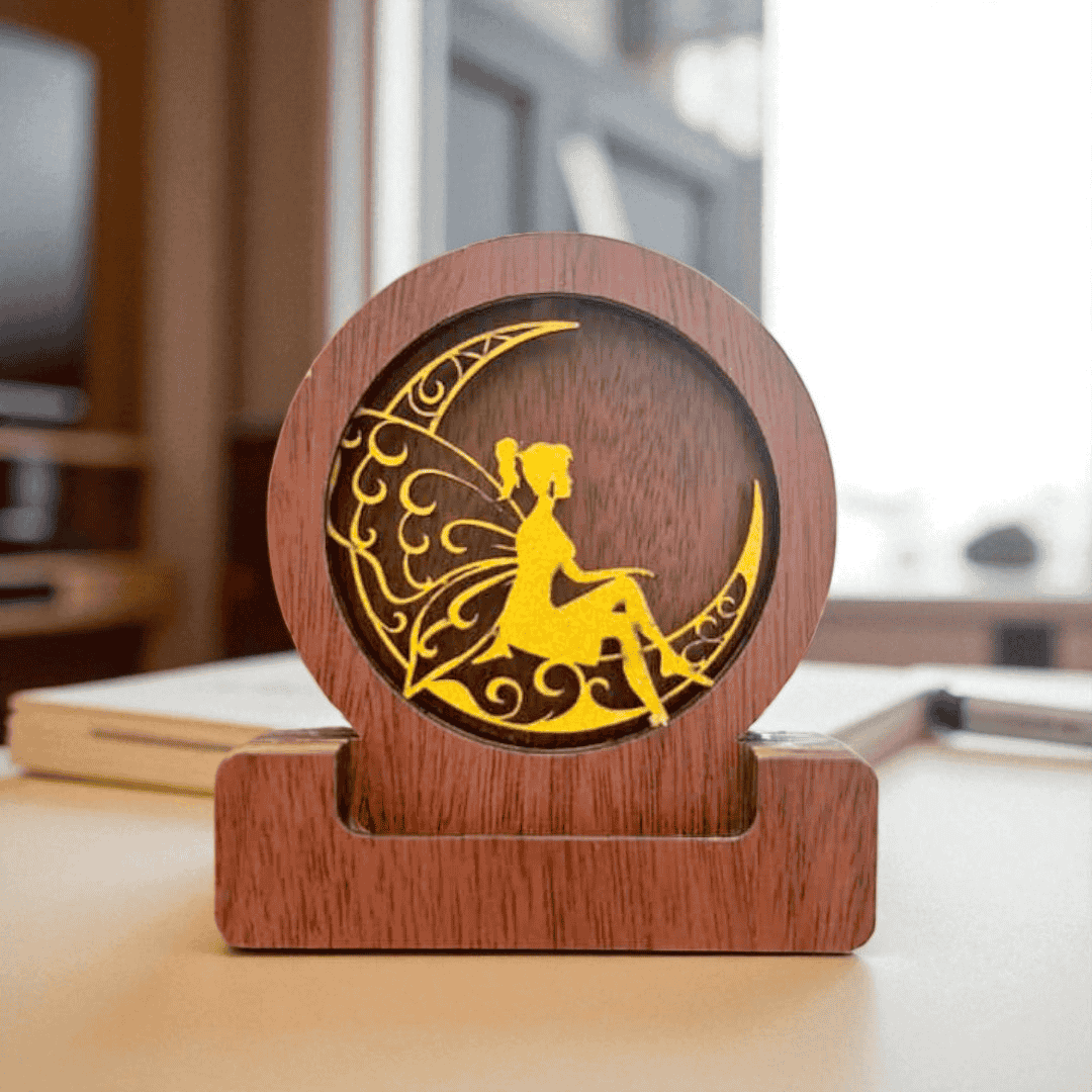 Fuente/cascada de humo. Porta conos decorativos. Diseño en madera de alta calidad serigrafiada, altura 13 cm.