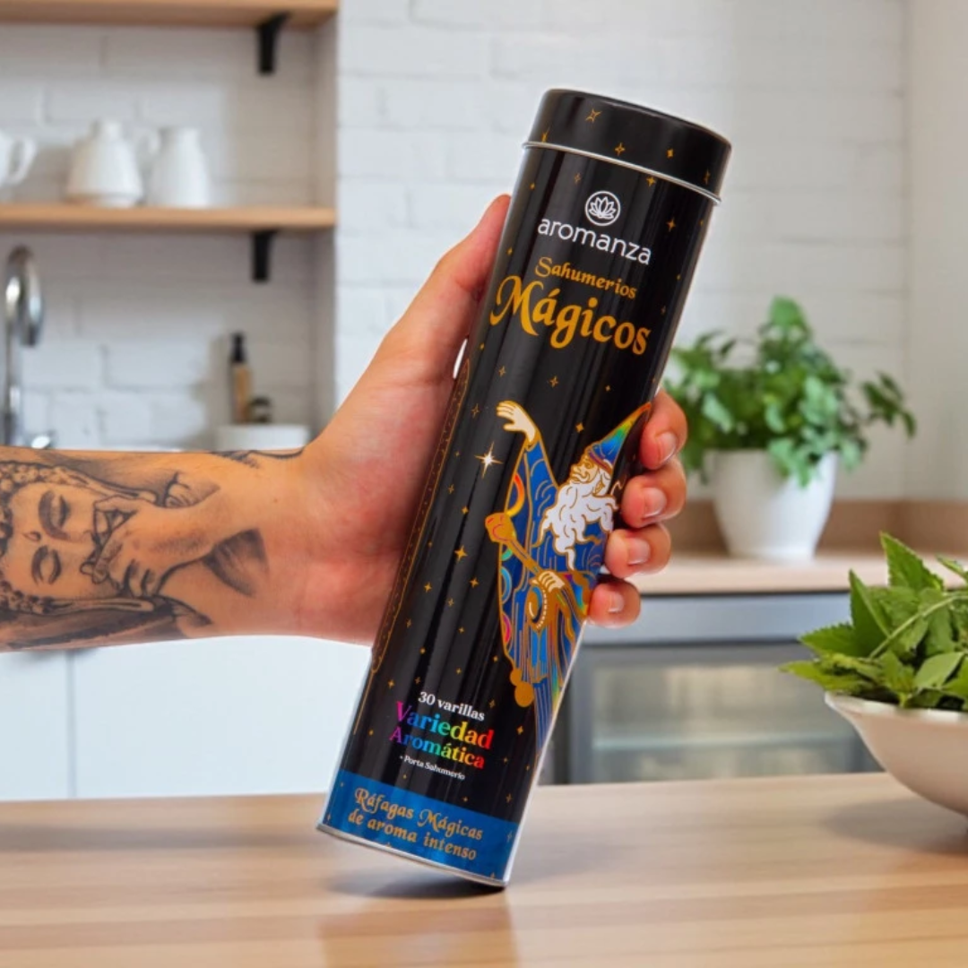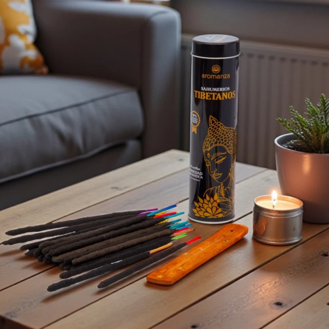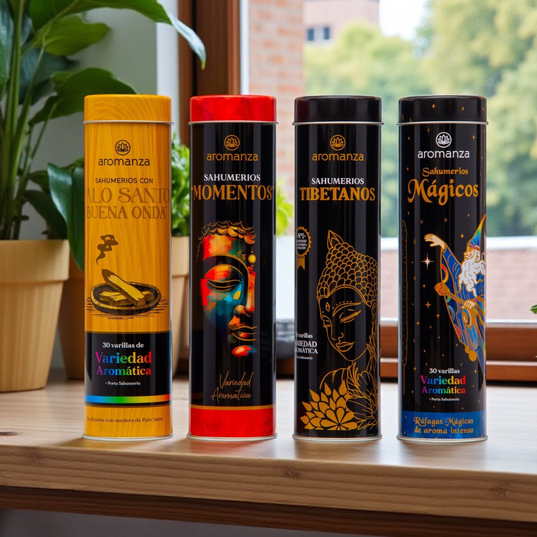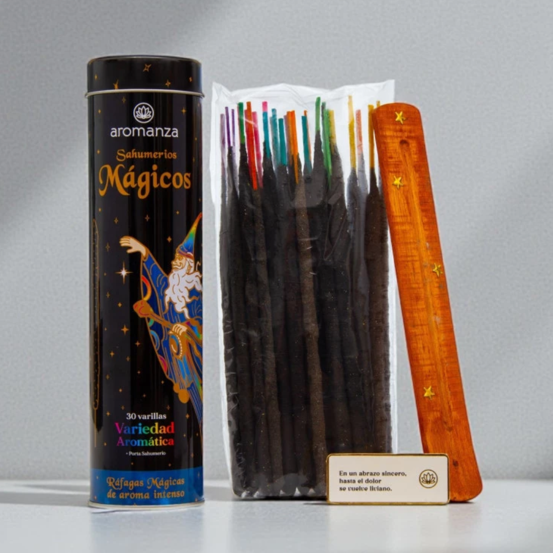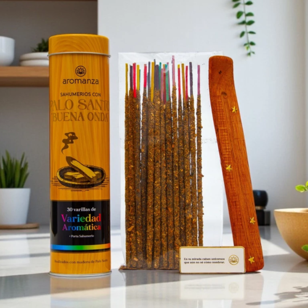 Cada lata incluye 30 varillas + porta sahumerios, listas para encender bienestar.