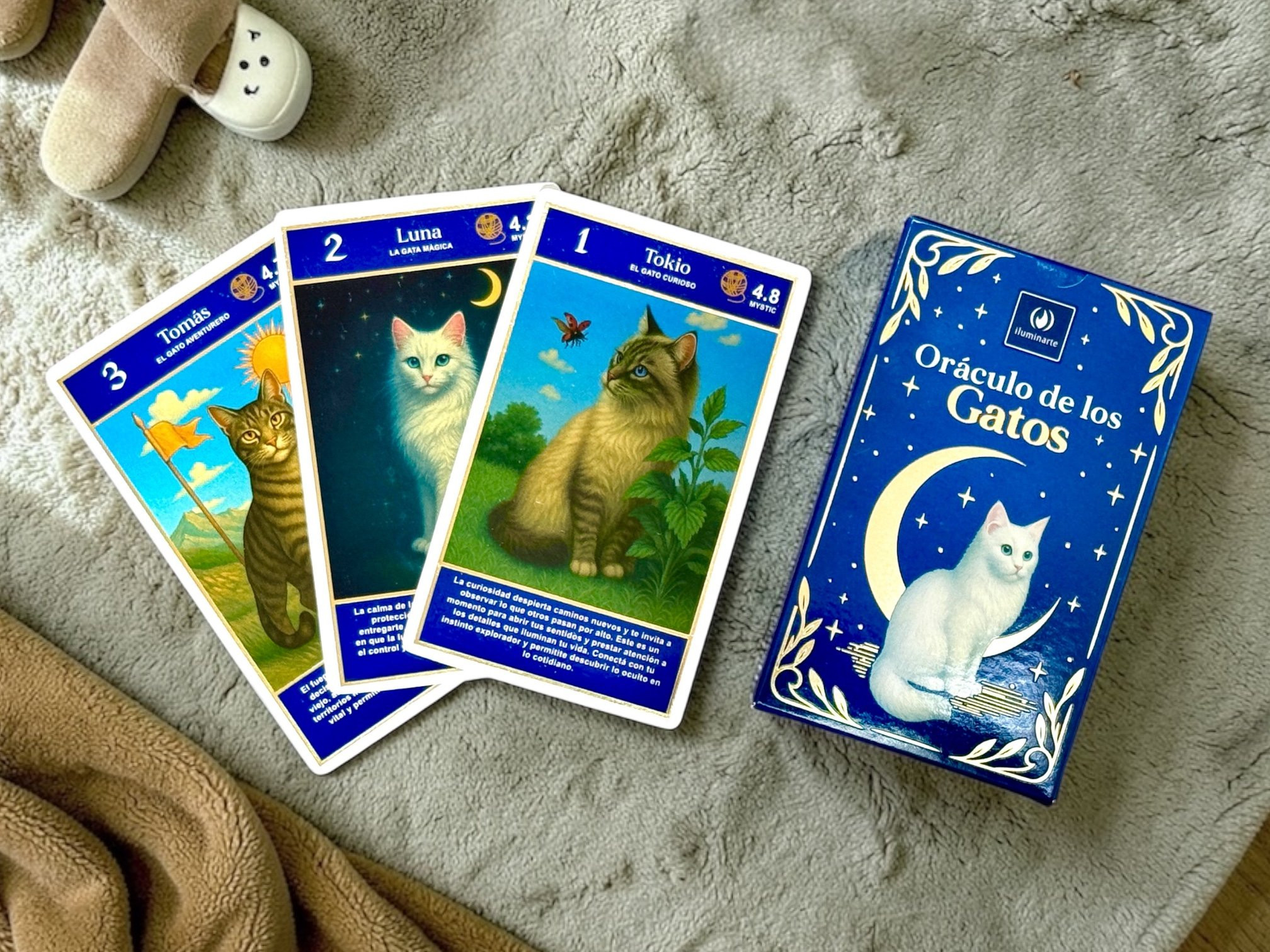 El Oráculo de los gatos es una herramienta de adivinación y crecimiento personal que utiliza la figura del gato como guía espiritual. Contiene 20 cartas.