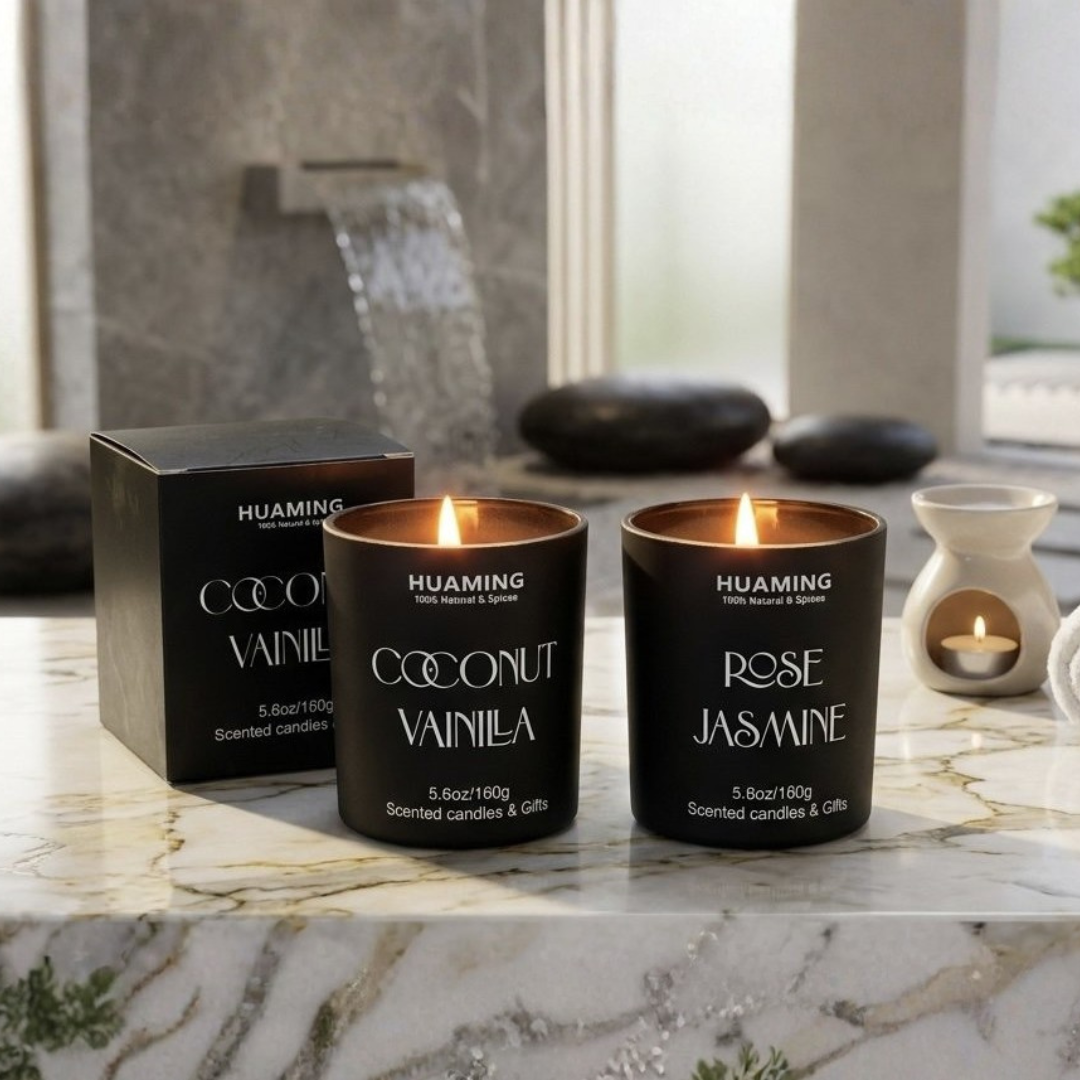 Las velas Huaming están elaboradas con ceras de alta calidad que aseguran una quemado parejo y una difusión constante de la fragancia en el ambiente. Su elegante presentación las convierte en un objeto de decoración clave para livings, dormitorios o baños. Contienen 160grs.